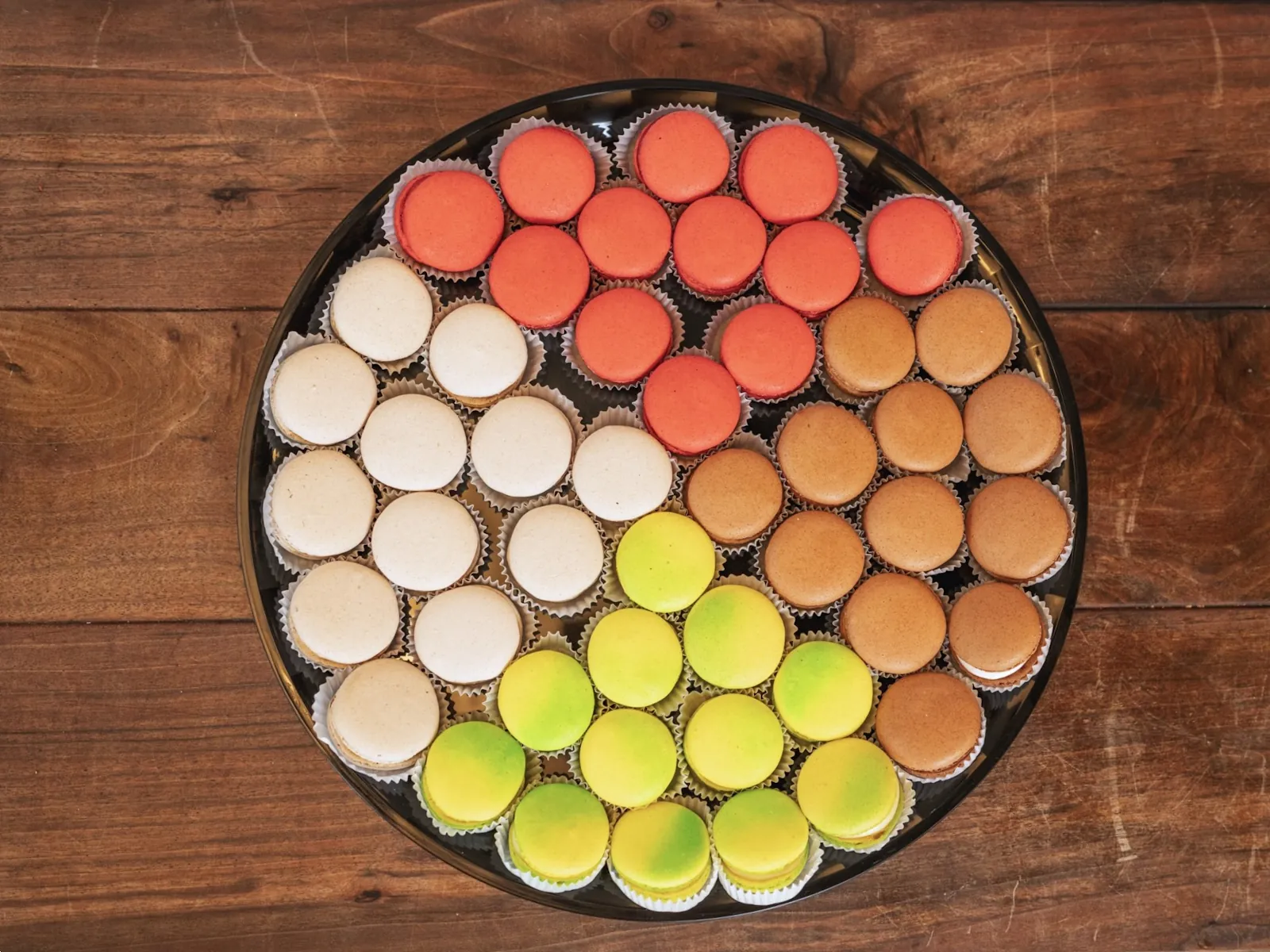 A curated selection of our most popular French macarons, beautifully arranged on an 18″ platter. Flavors rotate seasonally to highlight fresh, festive ingredients and colors.